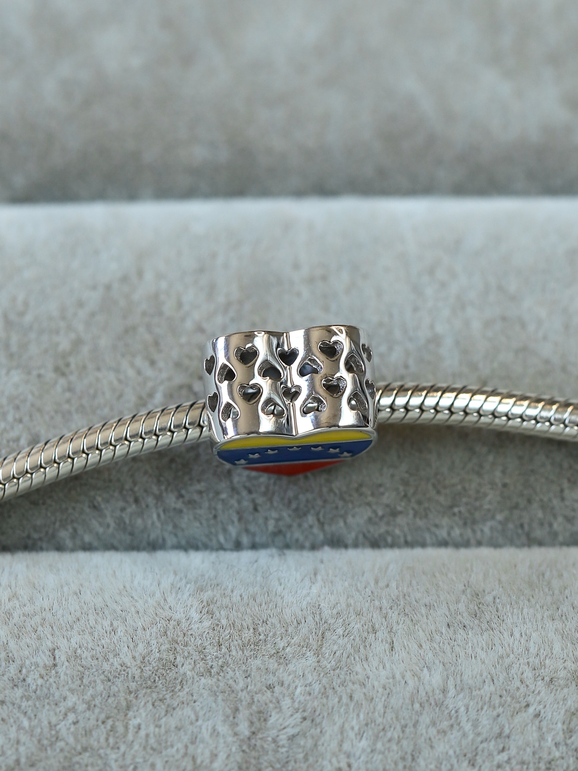 Charm Corazón con Bandera de Venezuela en plata 925 y esmalte de color.